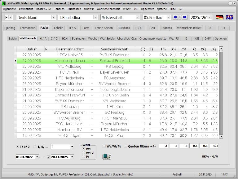 Update: Die Analyse/ KI-Software ist in der neuen Version der Ligaverwaltung Odds-Liga mit eingearbeitet.